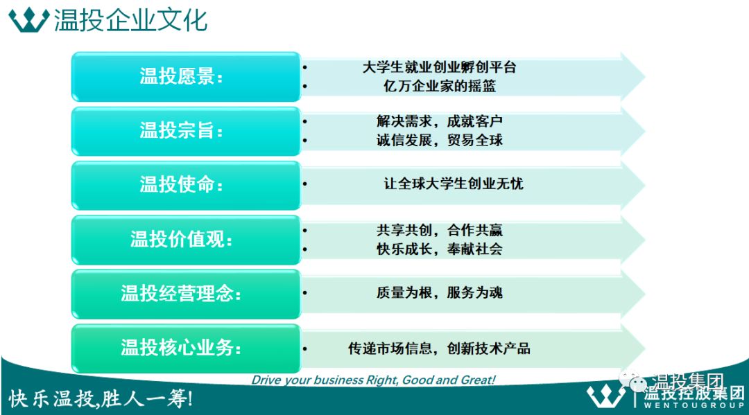 Wen Tou is always fulfill the values of Win-Win Cooperation, Happy Growth, Create and Share together, Service society, to offer ideas for“The Belt and Road”with all world’s Wen Zhou business men, to help Chinese university students achieve employment dream more faster.